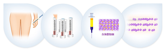 2. 脂肪颗粒纯化:将自体脂肪经特殊处理成为纯净脂肪颗粒。